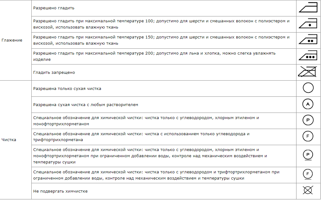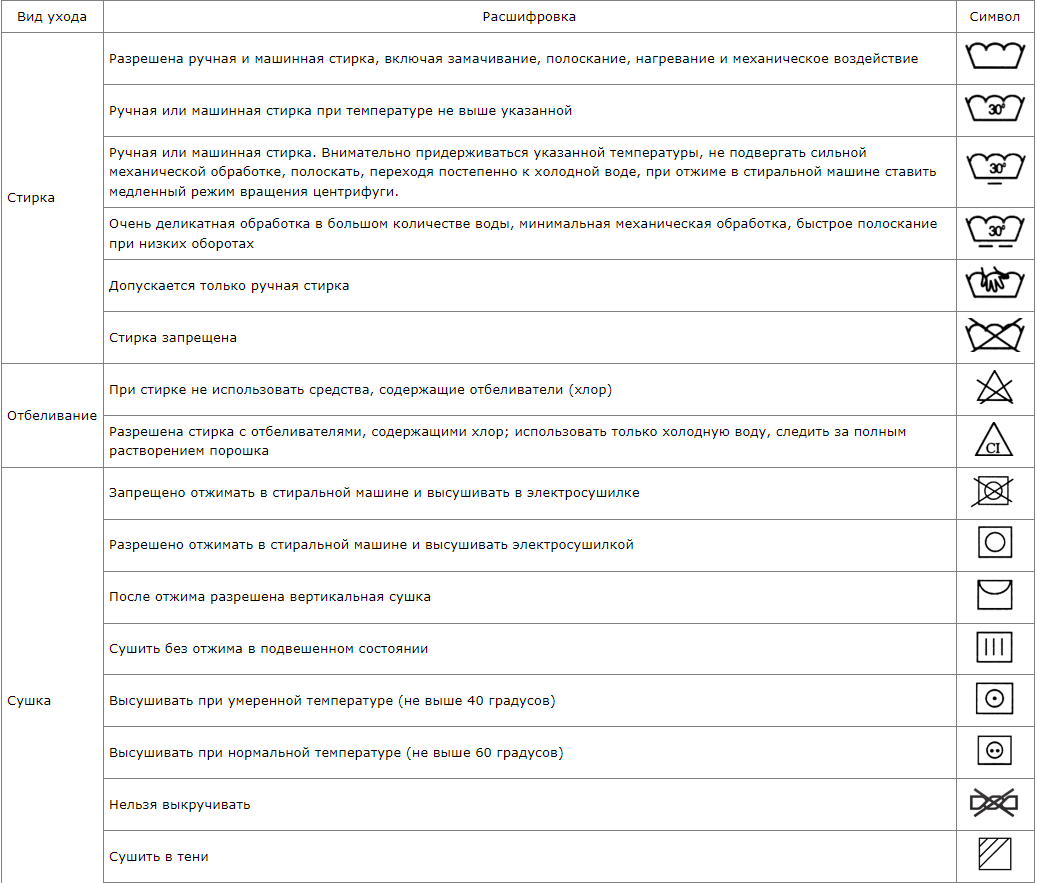 Расшифровка условных обозначений по уходу за изделиями